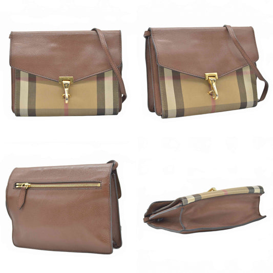 $1290 Burberry Derby Calfskin House Check Small Macken Crossbody Bag Tan