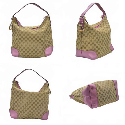 $1050 Gucci Beige Pink GG Canvas Heart-Bit Hobo Bag