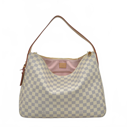 $1980 Louis Vuitton Graceful PM Rose Ballerine White Damier Azur Canvas Tote RFID