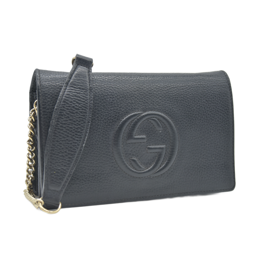 Gucci Pebbled Calfskin Soho Wallet On Chain Black