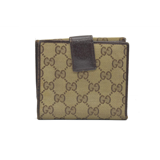 GUCCI GG Canvas Leather Compact Wallet Bifold Double Snap Beige CONSIGNMENT