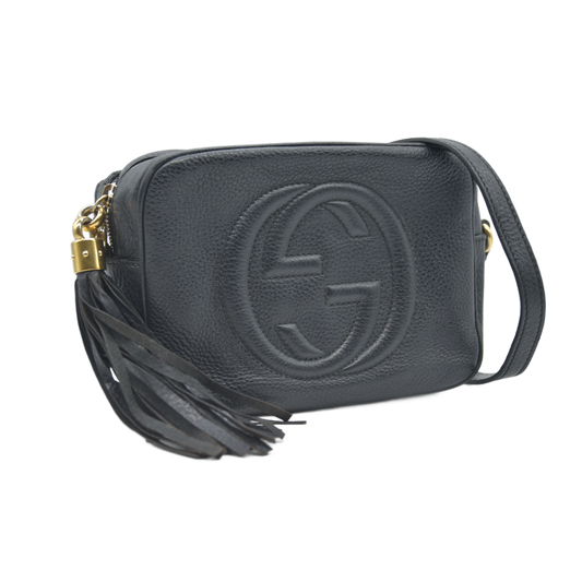 $1490 GUCCI Soho Shoulder Bag Black Leather Used Crossbody