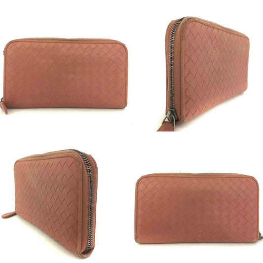 • Bottega Veneta Intrecciato Lambskin Zip Around Long Wallet Pink