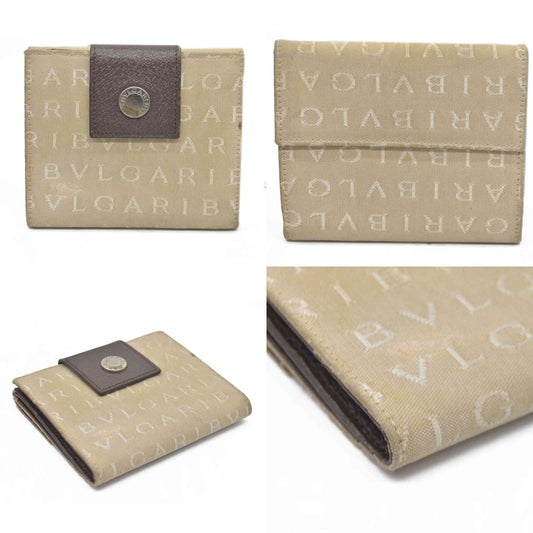 • BVLGARI Logo Mania Canvas Bifold Wallet Beige