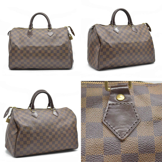 $1730 Louis Vuitton Damier Ebene Speedy 35 DU0120 2010