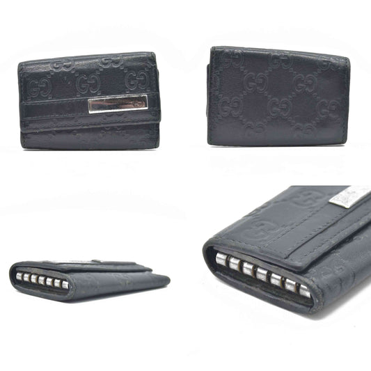 $350 GUCCI Ssima GG Logo Leather 6 Ring Key Case Black Marmont