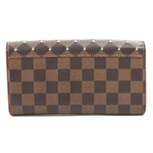 LOUIS VUITTON Damier Ebene Studded Sarah Wallet NM Red