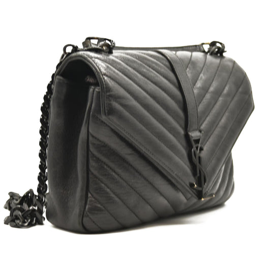 Saint Laurent Sheepskin Matelasse Chevron Monogram Monochrome Medium College Bag Black