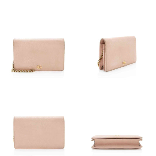 GUCCI Dollar Calfskin Mini GG Marmont Chain Wallet Perfect Pink