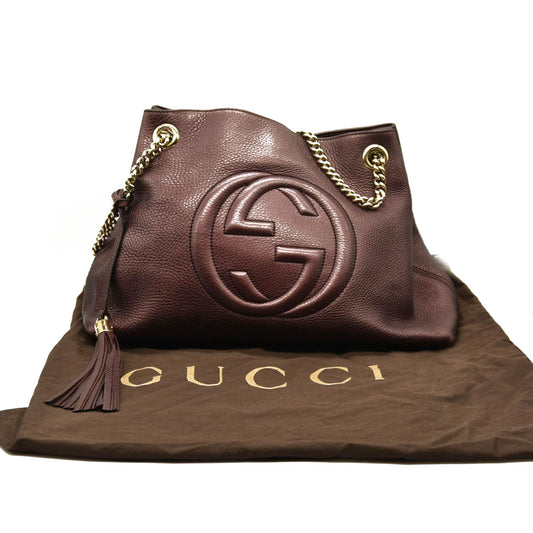 USED GUCCI Pebbled Calfskin Medium Soho Chain Shoulder Bag Metallic Purple