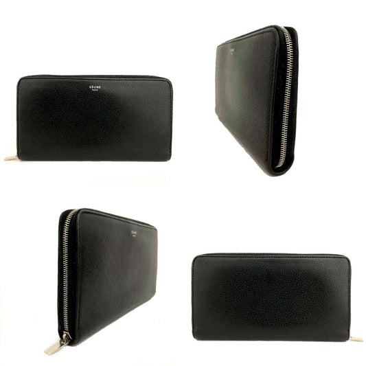 CELINE Calfskin Large Zip Around Multifunction Wallet Black Citron