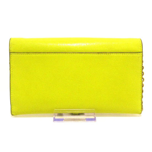 CHRISTIAN DIOR Yellow Grained Calfskin Saddle Chain Wallet Pouch