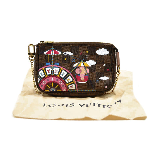 LOUIS VUITTON Damier Ebene 2020 Christmas Animation Big Wheel Mini Pochette Accessories Rose Ballerine
