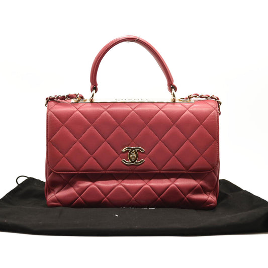 CHANEL Lambskin Quilted Small Trendy CC Flap Dual Handle Bag Dark Pink