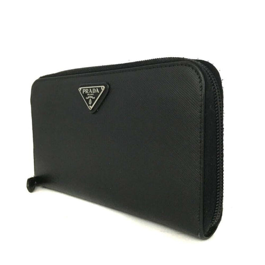 PRADA Saffiano Triangle Zip Around Wallet Black
