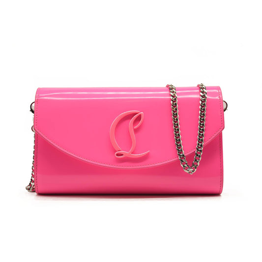 CHRISTIAN LOUBOUTIN LOUBI54 LEATHER WALLET ON A CHAIN FLUO PINK