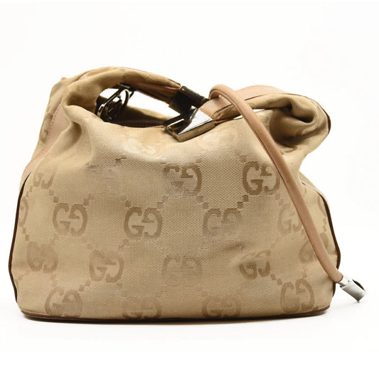 GUCCI Monogram GG Small Clasp Hobo Beige