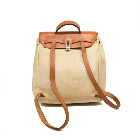 HERMES Toile Vache Calfskin Herbag 30 PM Backpack Natural