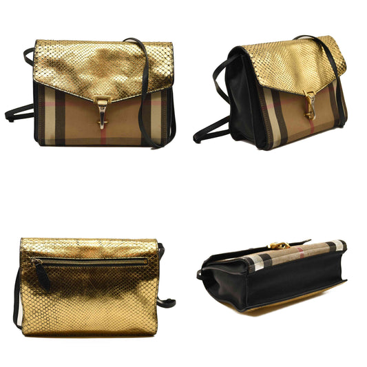 BURBERRY Derby Calfskin House Check Small Macken Crossbody Bag Gold