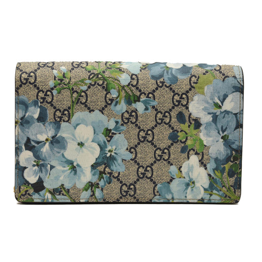 GUCCI GG Supreme Monogram Blooms Chain Wallet Blue