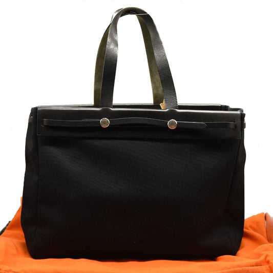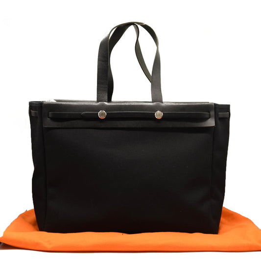 HERMES Toile Calfskin Herbag Cabas MM Black CG