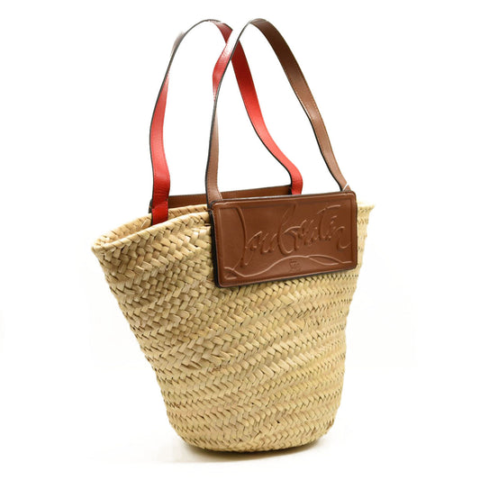 NEW CHRISTIAN LOUBOUTIN Woven Straw Loubishore Tote Beige