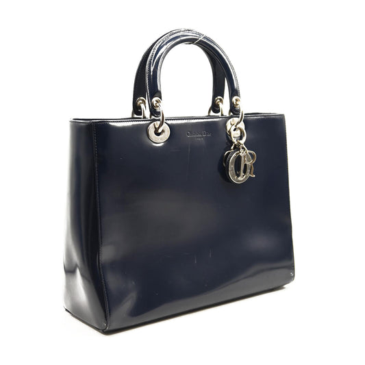 DIOR/ChristianDior Lady Dior Large Bag Handbag Dark Navy Leather