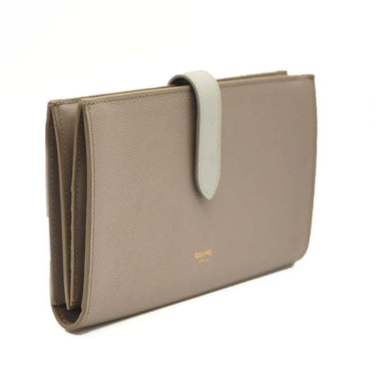 CELINE Grained Calfskin Medium Multifunction Strap Wallet Gray Beige