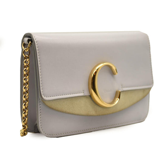 CHLOE Calfskin Suede C Clutch With Chain Light Blue