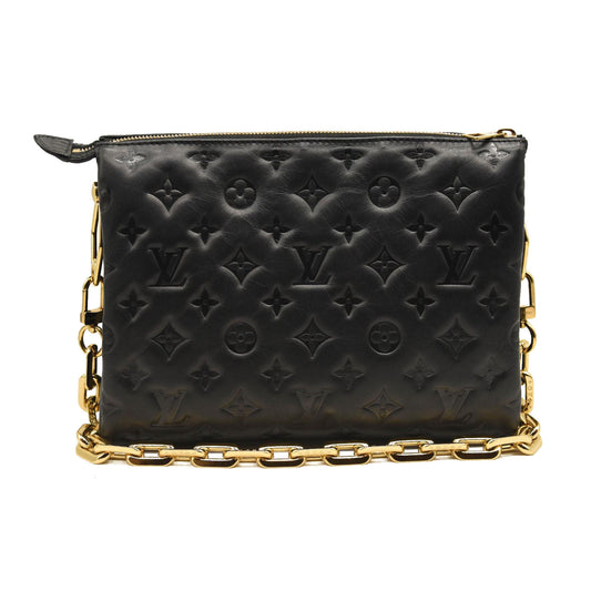 Louis Vuitton Lambskin Embossed Monogram Coussin PM Black