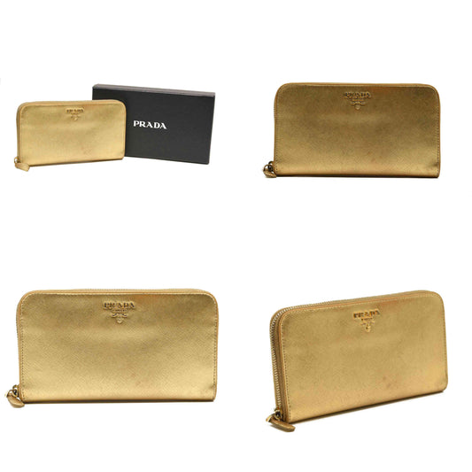 Prada Saffiano Zip Around Wallet Metallic Gold