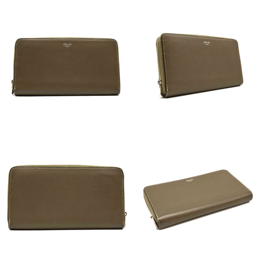 Celine Grained Calfskin Large Zip Around Multifunction Wallet Taupe