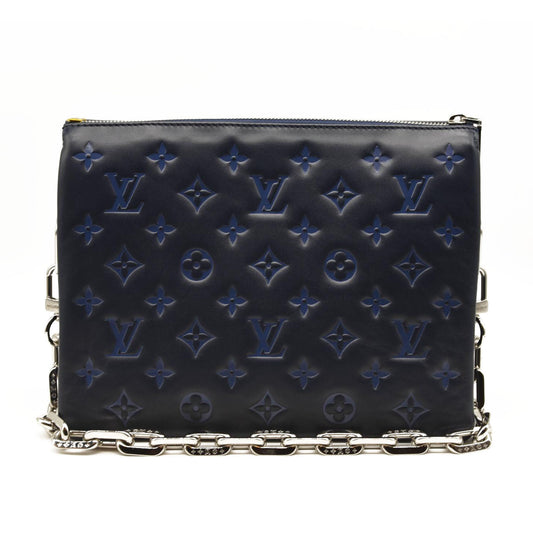 LOUIS VUITTON Lambskin Embossed Monogram Coussin PM Navy