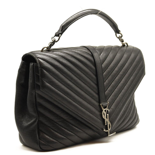 SAINT LAURENT Sheepskin Matelasse Chevron Monogram Large College Satchel Black