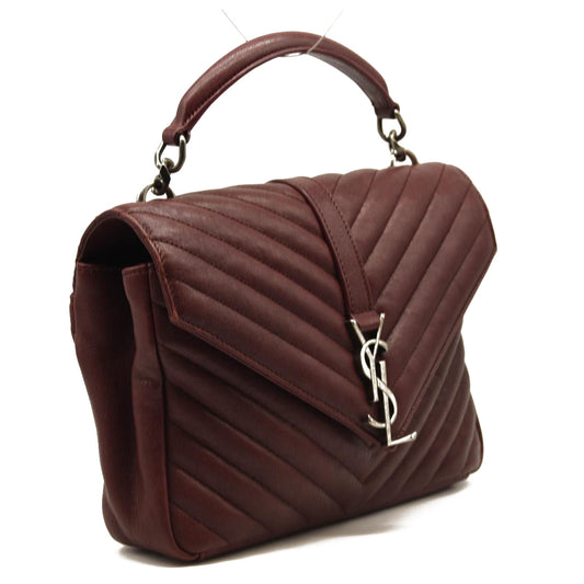 SAINT LAURENT Sheepskin Matelasse Chevron Monogram Medium College Bag Rouge Legion