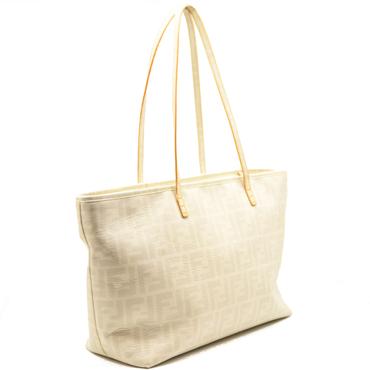 FENDI Zucca Spalmati Roll Tote White Coated Canvas