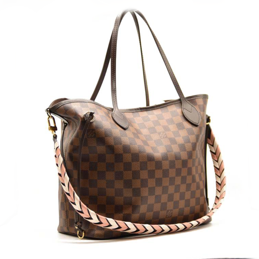 LOUIS VUITTON Damier Ebene Braided Neverfull MM Pink