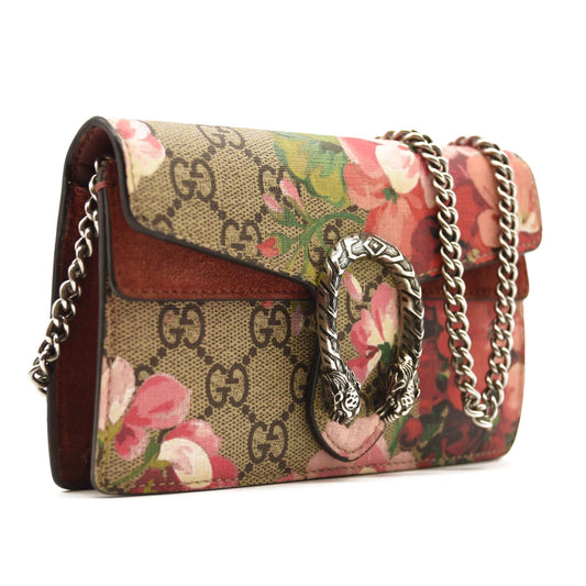 USED GUCCI GG Supreme Monogram Blooms Super Mini Dionysus Shoulder Bag Beige Multicolor Dry Rose