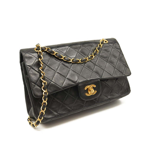 CHANEL Lambskin Quilted Medium Double Flap Black