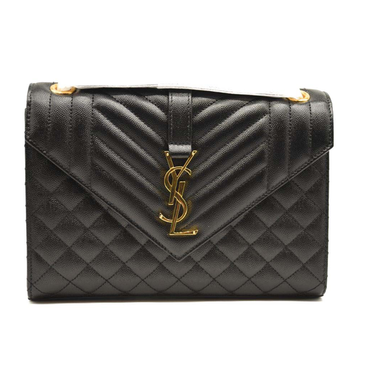 NEW SAINT LAURENT Grain De Poudre Textured Mixed Matelasse Triquilt Medium Monogram Satchel Black