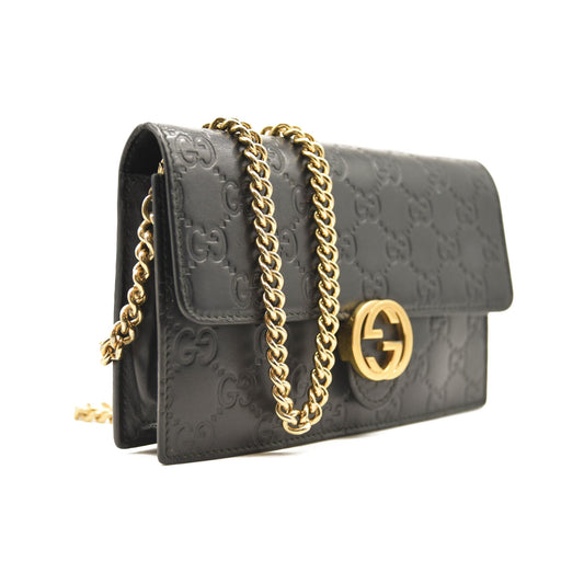 USED GUCCI Guccissima Icon Chain Wallet Black