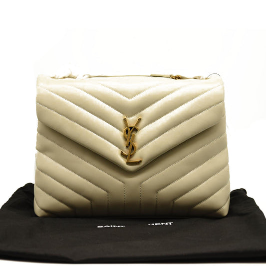 NEW SAINT LAURENT Calfskin Y Quilted Monogram Medium Loulou Chain Satchel Crema Soft