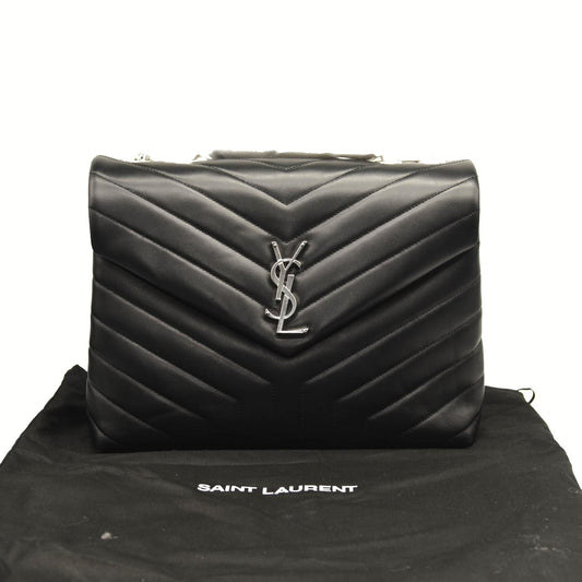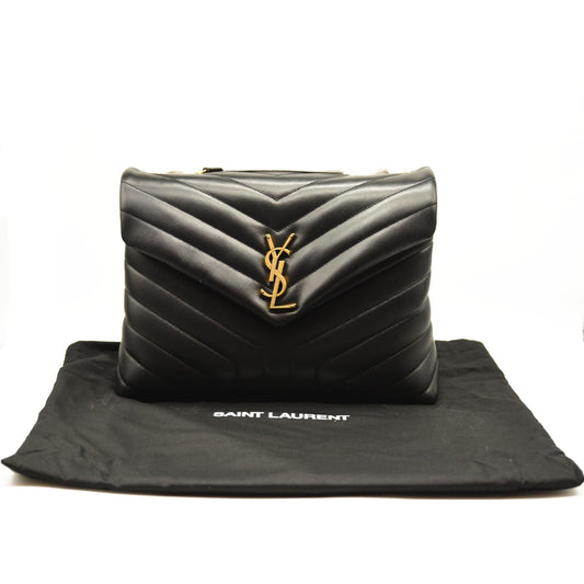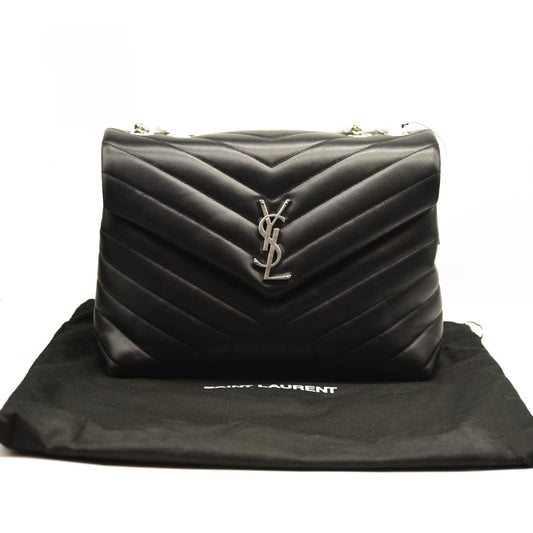 NEW SAINT LAURENT Calfskin Y Quilted Monogram Medium Loulou Chain Satchel Black