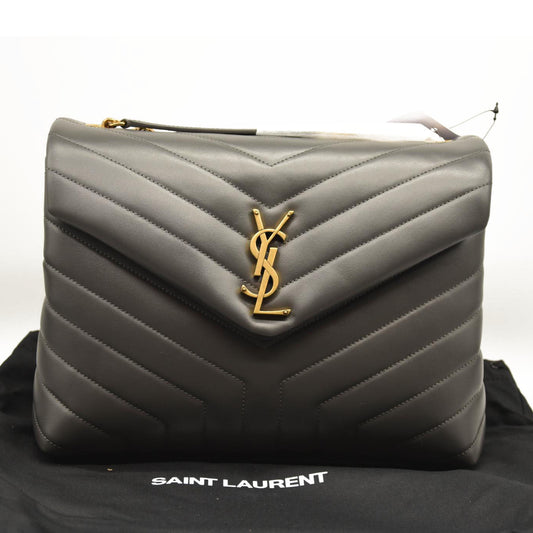 NEW SAINT LAURENT Calfskin Y Quilted Monogram Medium Loulou Chain Satchel Storm