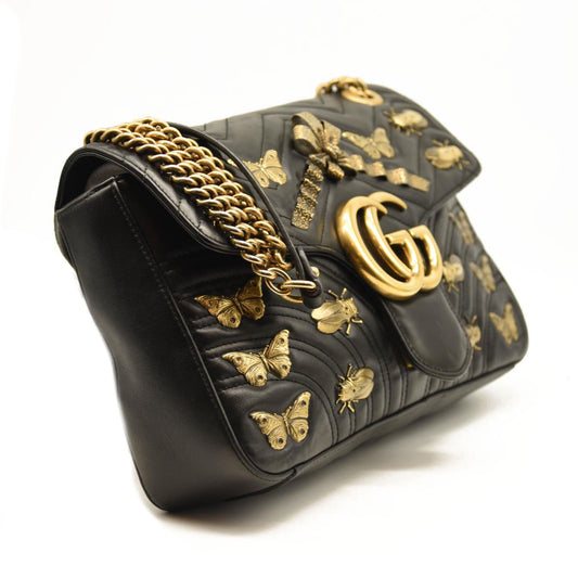 GUCCI Calfskin Matelasse Animal Studs Medium GG Marmont Shoulder Bag Black