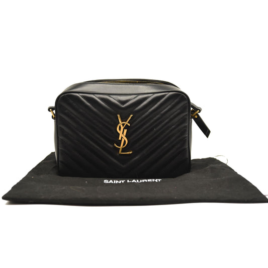 SAINT LAURENT Calfskin Matelasse Monogram Lou Camera Bag Black