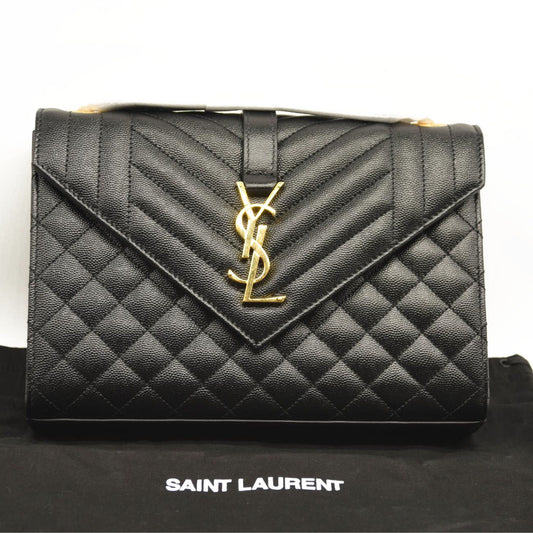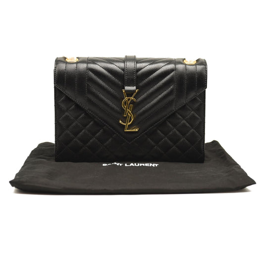 SAINT LAURENT Grain De Poudre Textured Mixed Matelasse Triquilt Medium Monogram Satchel Black