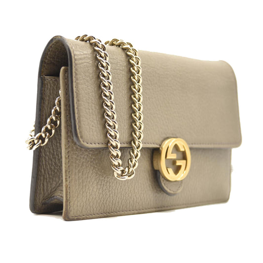 GUCCI Dollar Calfskin Interlocking G Chain Wallet Grey
