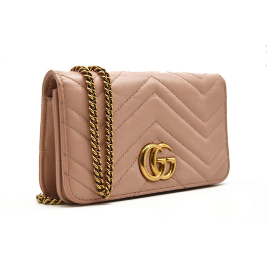 GUCCI Calfskin Matelasse GG Marmont Mini Bag Perfect Pink