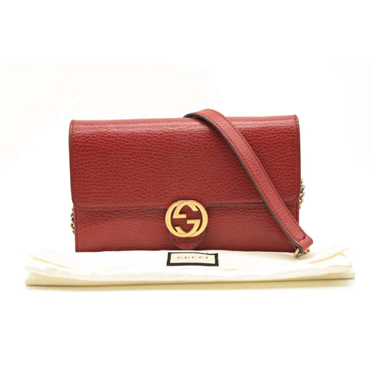 GUCCI Dollar Calfskin Interlocking G Chain Wallet Red